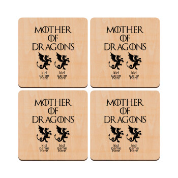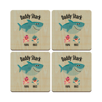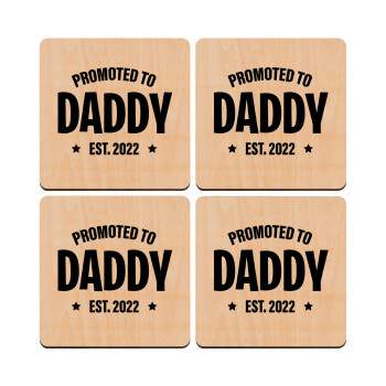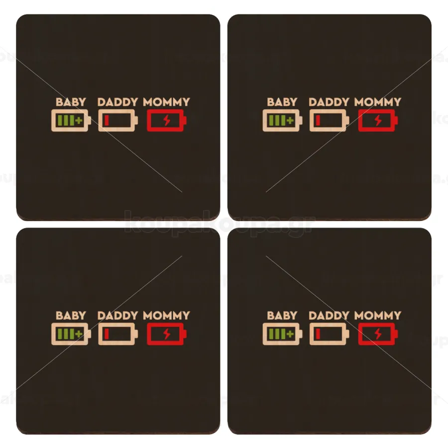 BABY, MOMMY, DADDY Low battery, ΣΕΤ x4 Σουβέρ ξύλινα τετράγωνα plywood (9cm)