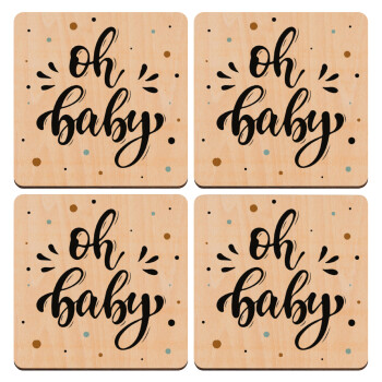 Oh baby, ΣΕΤ x4 Σουβέρ ξύλινα τετράγωνα plywood (9cm)