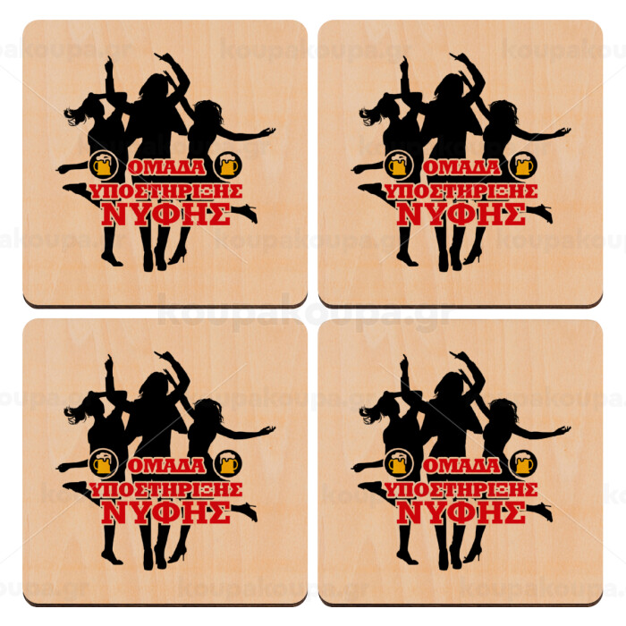 Bachelor Ομάδα υποστήριξης Νύφης, ΣΕΤ x4 Σουβέρ ξύλινα τετράγωνα plywood (9cm)