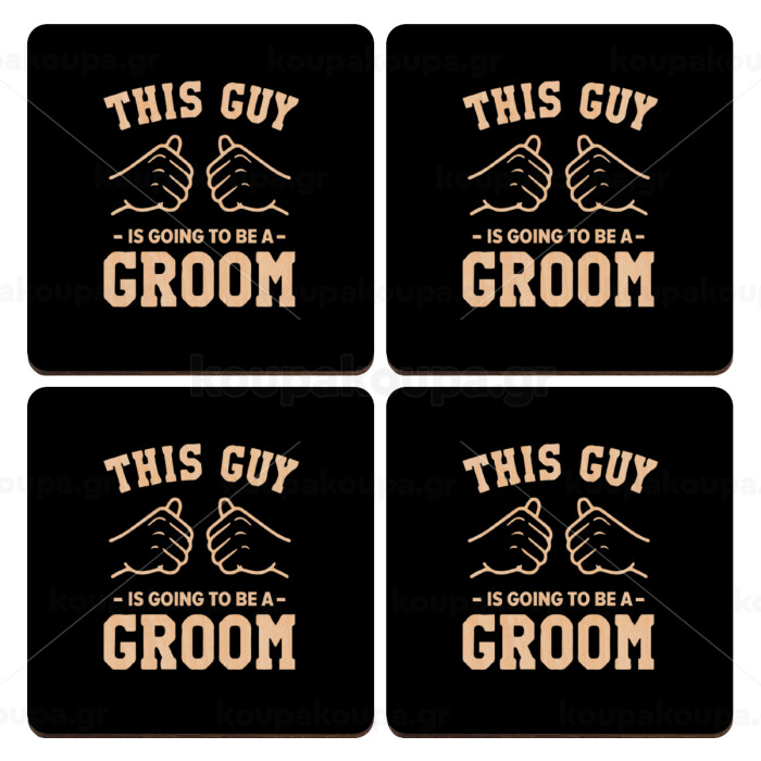 This Guy is going to be a GROOM, ΣΕΤ x4 Σουβέρ ξύλινα τετράγωνα plywood (9cm)