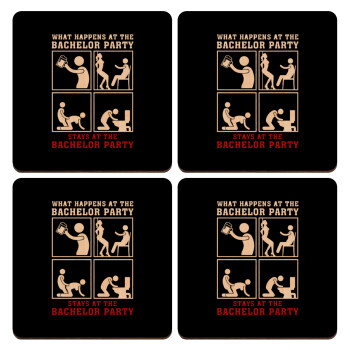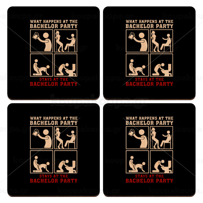 What happens at the bachelor party, stays at the bachelor party!, ΣΕΤ x4 Σουβέρ ξύλινα τετράγωνα plywood (9cm)