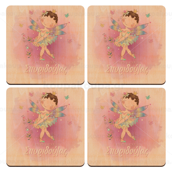 Η νονά μου, Νεράϊδα, ΣΕΤ x4 Σουβέρ ξύλινα τετράγωνα plywood (9cm)