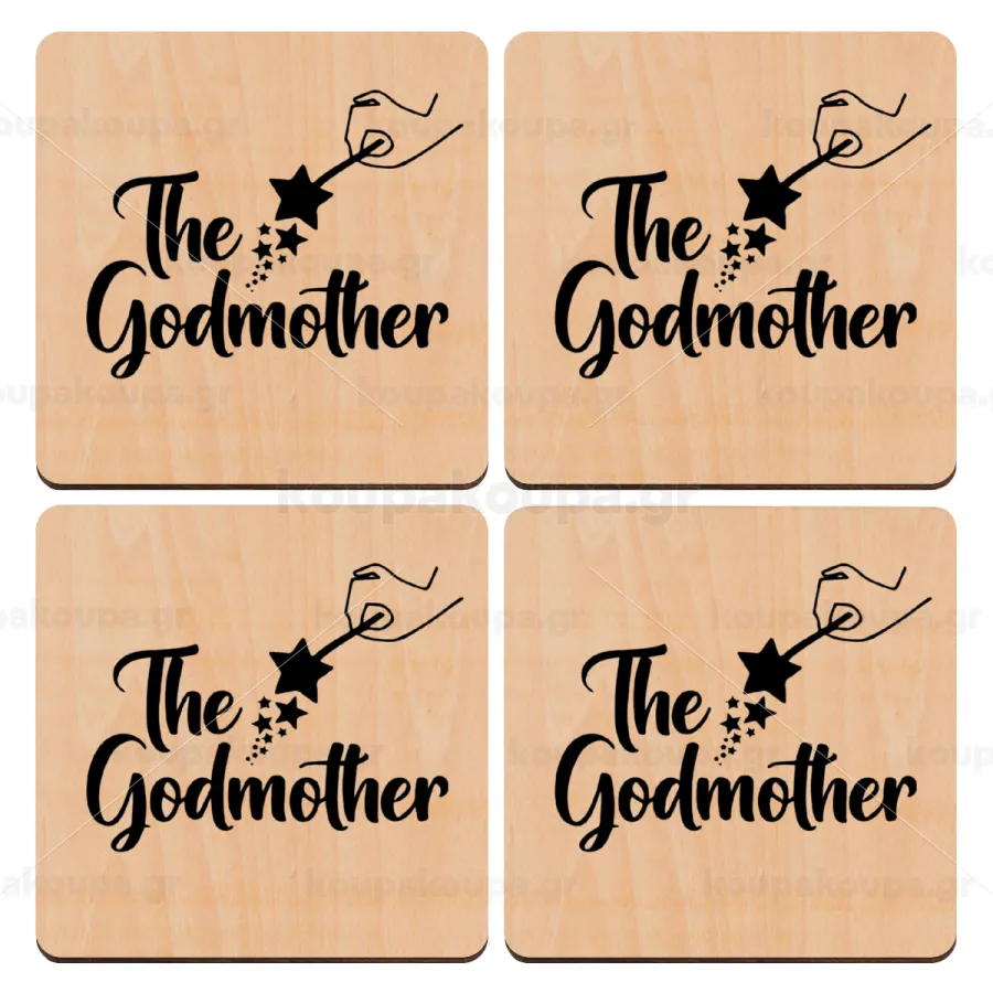 Fairy God Mother, ΣΕΤ x4 Σουβέρ ξύλινα τετράγωνα plywood (9cm)