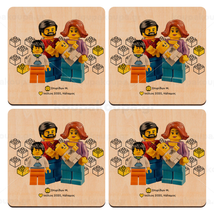 Τύπου Lego family, ΣΕΤ x4 Σουβέρ ξύλινα τετράγωνα plywood (9cm)