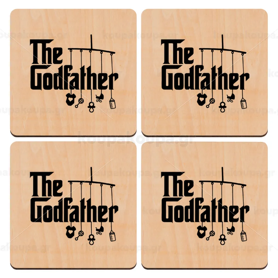 The Godfather baby, ΣΕΤ x4 Σουβέρ ξύλινα τετράγωνα plywood (9cm)