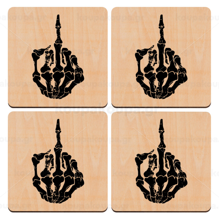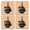 Middle finger, ΣΕΤ x4 Σουβέρ ξύλινα τετράγωνα plywood (9cm)