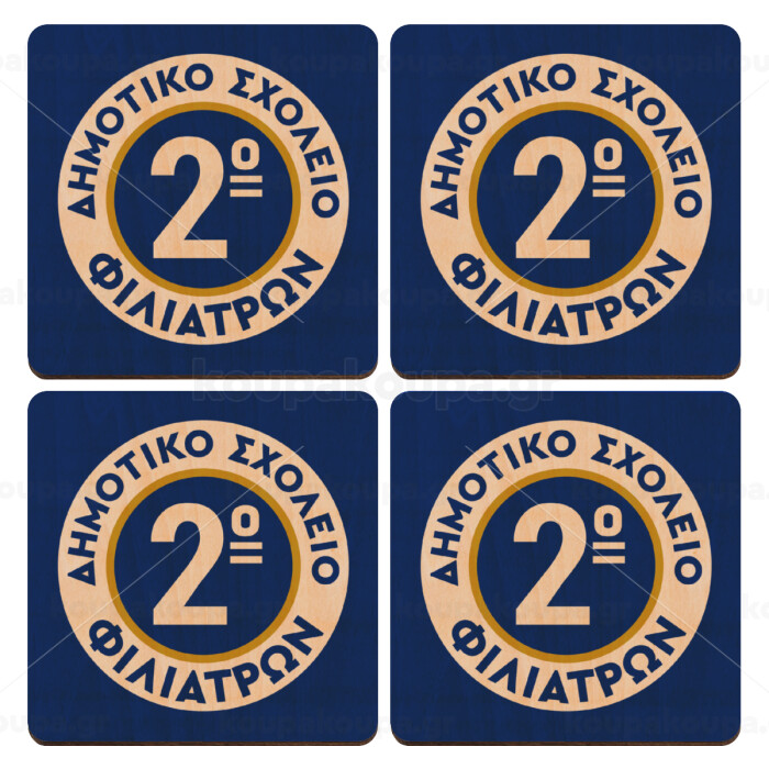 Έμβλημα Σχολικό μπλε κλασική, ΣΕΤ x4 Σουβέρ ξύλινα τετράγωνα plywood (9cm)