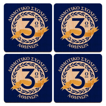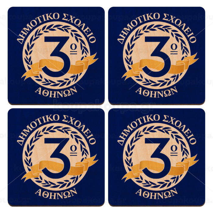 Έμβλημα Σχολικό μπλε, ΣΕΤ x4 Σουβέρ ξύλινα τετράγωνα plywood (9cm)