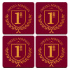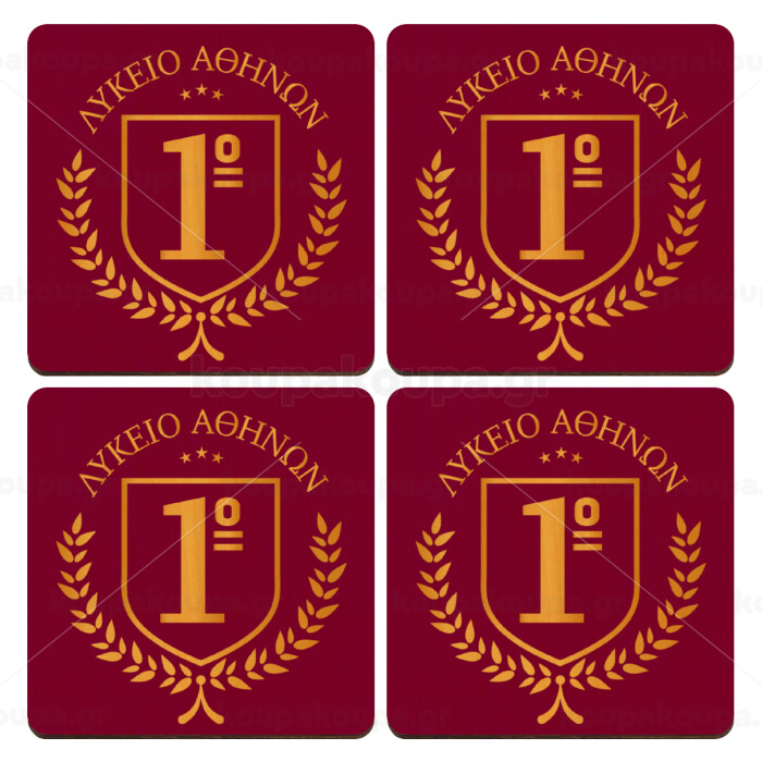 Έμβλημα Σχολικό μπορντό, ΣΕΤ x4 Σουβέρ ξύλινα τετράγωνα plywood (9cm)