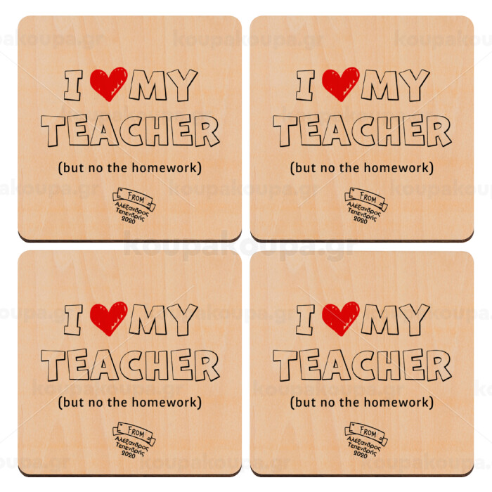 i love my teacher but no the homework outline, ΣΕΤ x4 Σουβέρ ξύλινα τετράγωνα plywood (9cm)