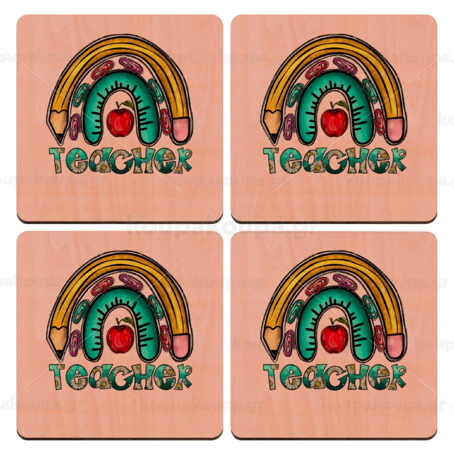 Teacher, ΣΕΤ x4 Σουβέρ ξύλινα τετράγωνα plywood (9cm)