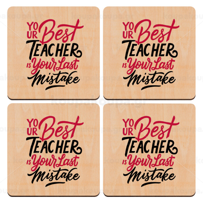 Typography quotes your best teacher is your last mistake, ΣΕΤ x4 Σουβέρ ξύλινα τετράγωνα plywood (9cm)