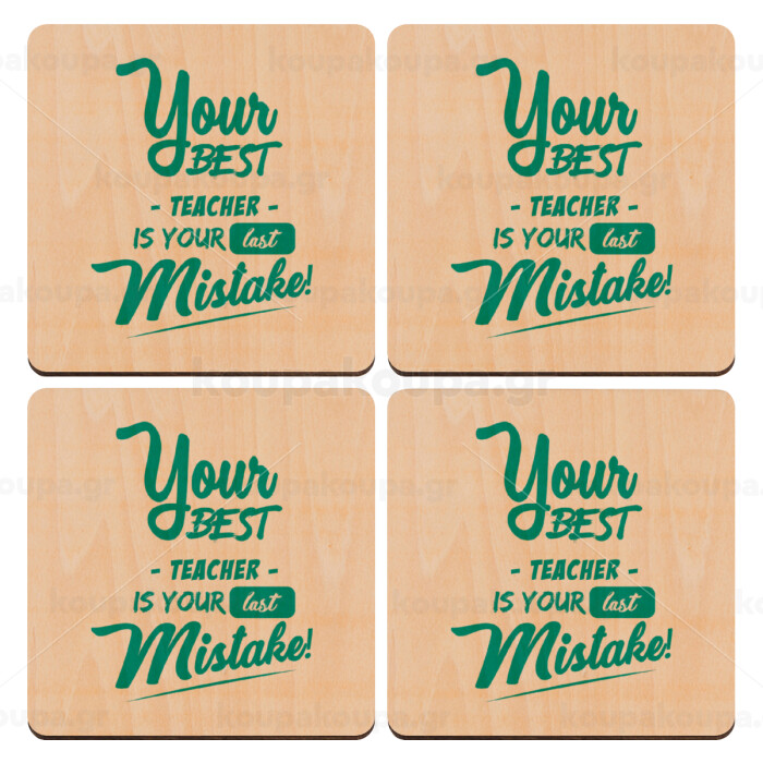 Your best teacher is your last mistake, ΣΕΤ x4 Σουβέρ ξύλινα τετράγωνα plywood (9cm)