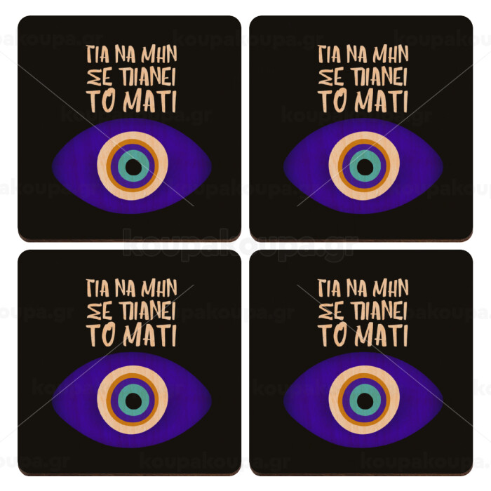 Για να μην σε πιάνει το μάτι, ΣΕΤ x4 Σουβέρ ξύλινα τετράγωνα plywood (9cm)