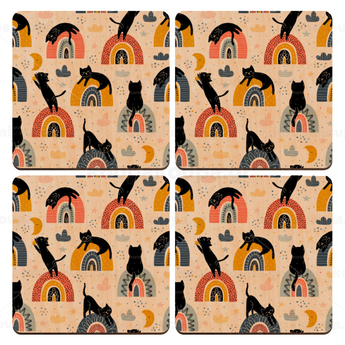 Γατούλες, ΣΕΤ x4 Σουβέρ ξύλινα τετράγωνα plywood (9cm)