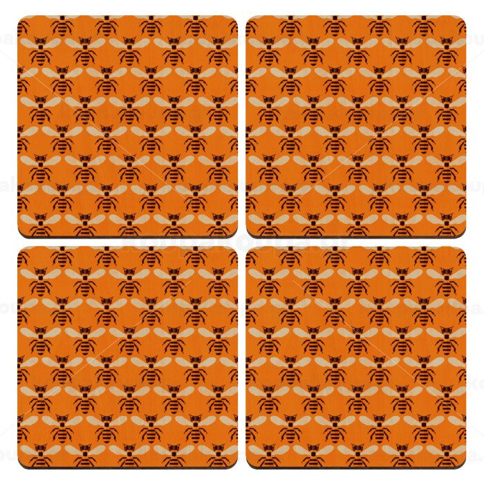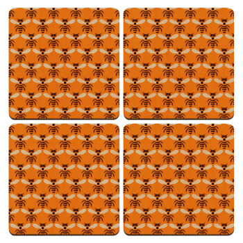 Μελισσούλες, ΣΕΤ x4 Σουβέρ ξύλινα τετράγωνα plywood (9cm)