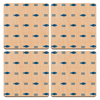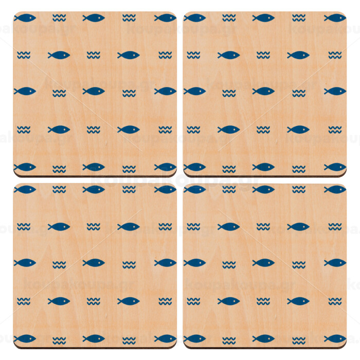 Ψαράκια, ΣΕΤ x4 Σουβέρ ξύλινα τετράγωνα plywood (9cm)