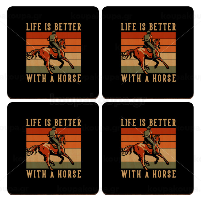 Life is Better with a Horse, ΣΕΤ x4 Σουβέρ ξύλινα τετράγωνα plywood (9cm)