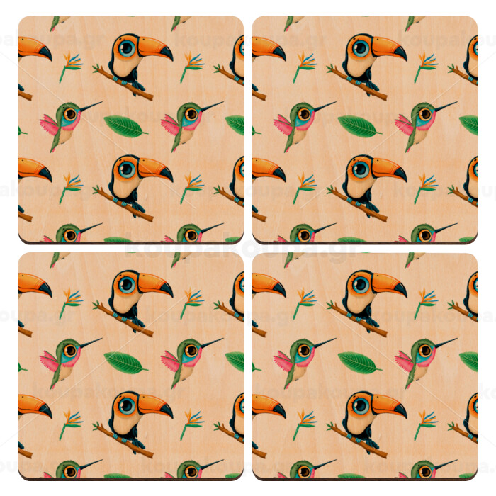Toucan, ΣΕΤ x4 Σουβέρ ξύλινα τετράγωνα plywood (9cm)