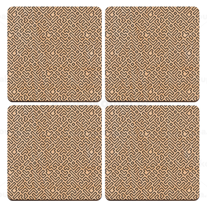 Doodle Maze, ΣΕΤ x4 Σουβέρ ξύλινα τετράγωνα plywood (9cm)