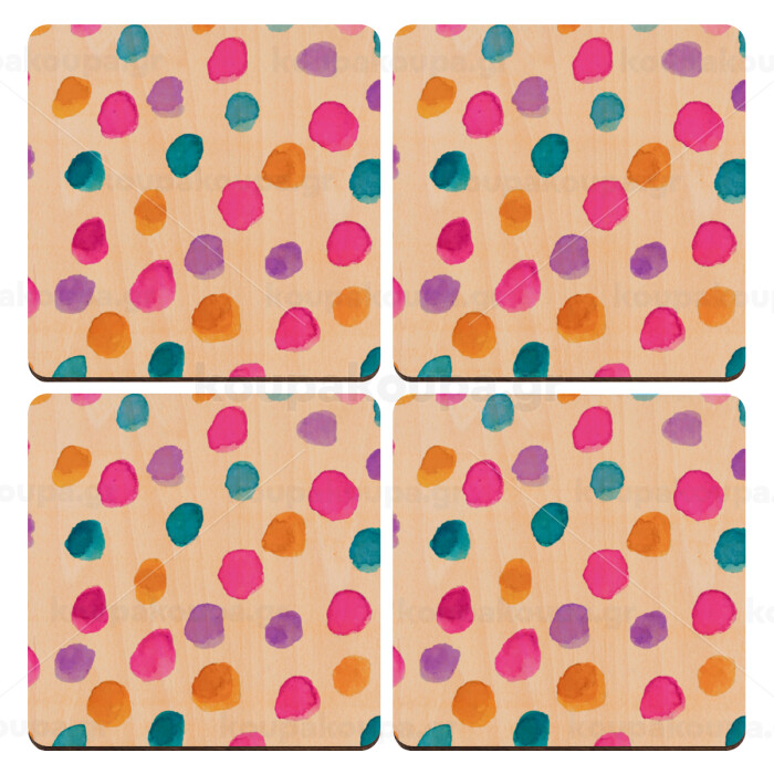 Watercolor dots, ΣΕΤ x4 Σουβέρ ξύλινα τετράγωνα plywood (9cm)