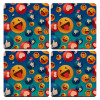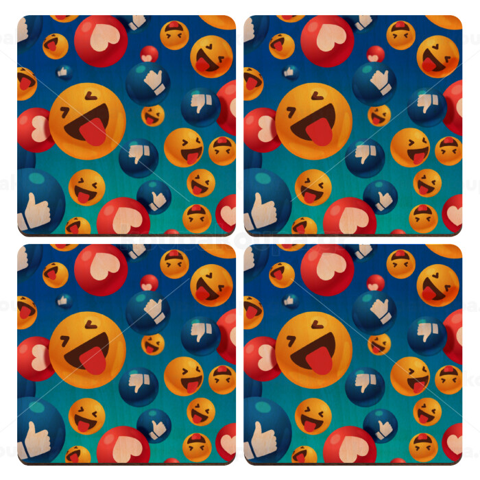 3D Emoji Collection, ΣΕΤ x4 Σουβέρ ξύλινα τετράγωνα plywood (9cm)