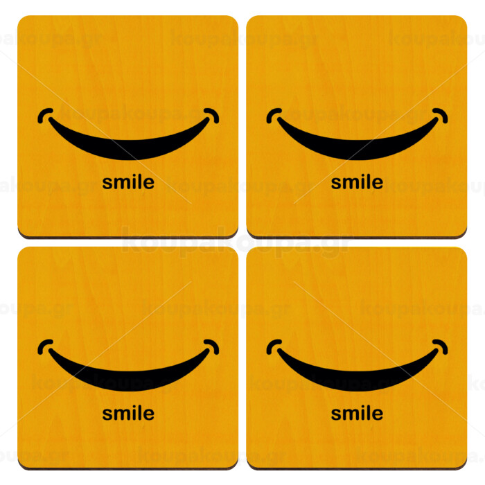Smile!!!, ΣΕΤ x4 Σουβέρ ξύλινα τετράγωνα plywood (9cm)