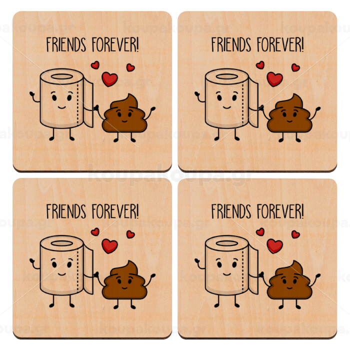 Friends forever, ΣΕΤ x4 Σουβέρ ξύλινα τετράγωνα plywood (9cm)