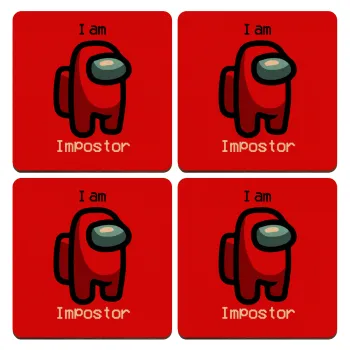 Among US i am impostor, ΣΕΤ x4 Σουβέρ ξύλινα τετράγωνα plywood (9cm)