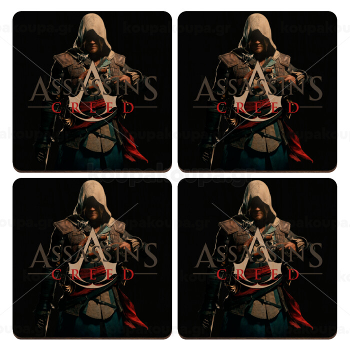 Assassin's Creed, ΣΕΤ x4 Σουβέρ ξύλινα τετράγωνα plywood (9cm)