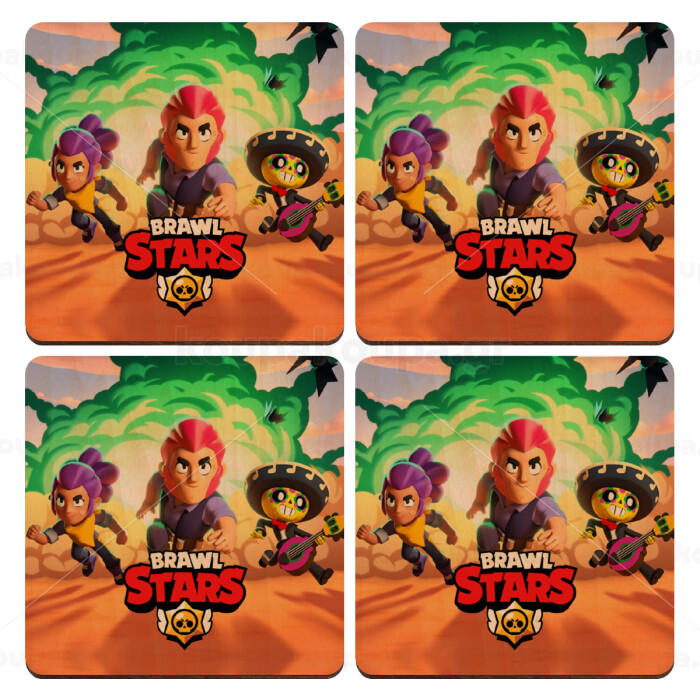 Brawl Stars Desert, ΣΕΤ x4 Σουβέρ ξύλινα τετράγωνα plywood (9cm)