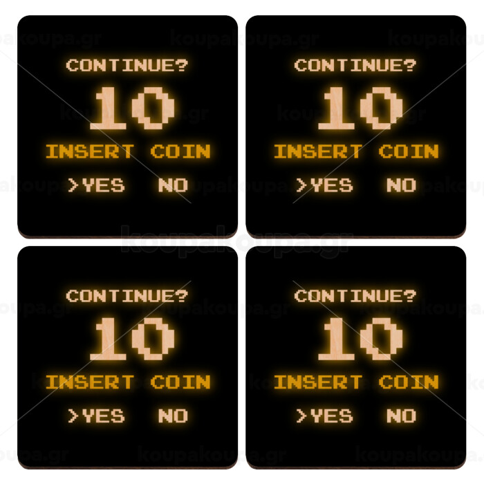 Continue? YES - NO, ΣΕΤ x4 Σουβέρ ξύλινα τετράγωνα plywood (9cm)