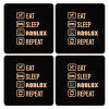 Eat, Sleep, Roblox, Repeat, ΣΕΤ x4 Σουβέρ ξύλινα τετράγωνα plywood (9cm)