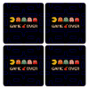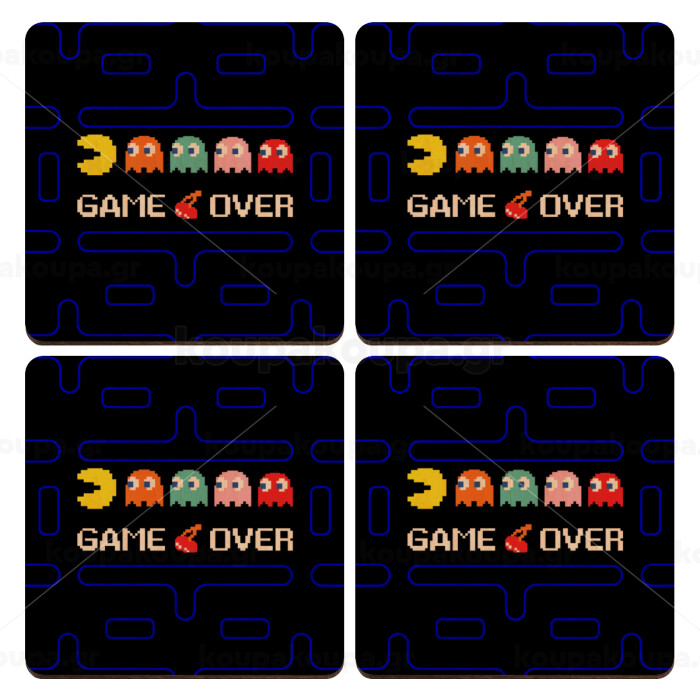 GAME OVER pac-man, ΣΕΤ x4 Σουβέρ ξύλινα τετράγωνα plywood (9cm)