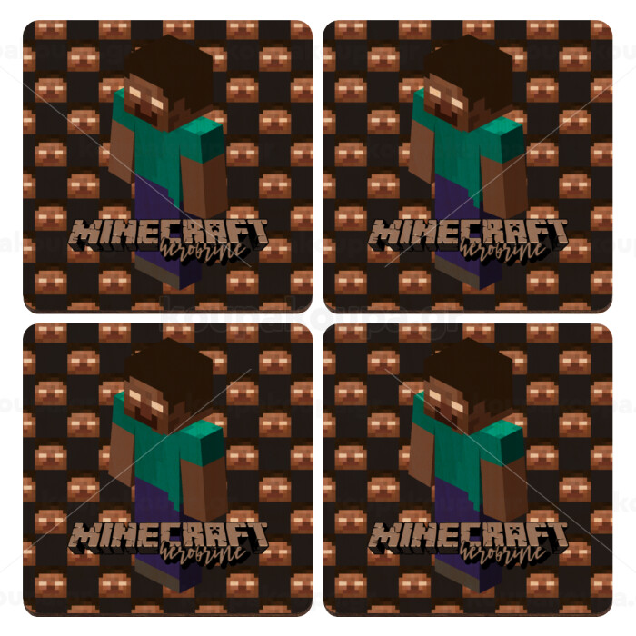 Minecraft herobrine, ΣΕΤ x4 Σουβέρ ξύλινα τετράγωνα plywood (9cm)