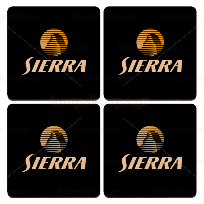 SIERRA, ΣΕΤ x4 Σουβέρ ξύλινα τετράγωνα plywood (9cm)