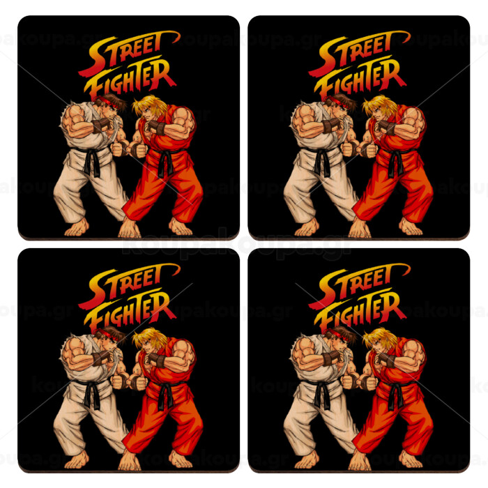 Street fighter, ΣΕΤ x4 Σουβέρ ξύλινα τετράγωνα plywood (9cm)