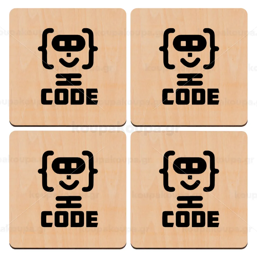 Code Heroes symbol, ΣΕΤ x4 Σουβέρ ξύλινα τετράγωνα plywood (9cm)