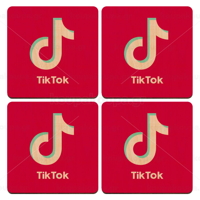 tik tok pink, ΣΕΤ x4 Σουβέρ ξύλινα τετράγωνα plywood (9cm)