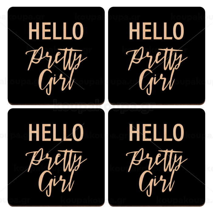 Hello pretty girl, ΣΕΤ x4 Σουβέρ ξύλινα τετράγωνα plywood (9cm)