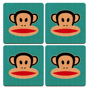 Monkey, ΣΕΤ x4 Σουβέρ ξύλινα τετράγωνα plywood (9cm)