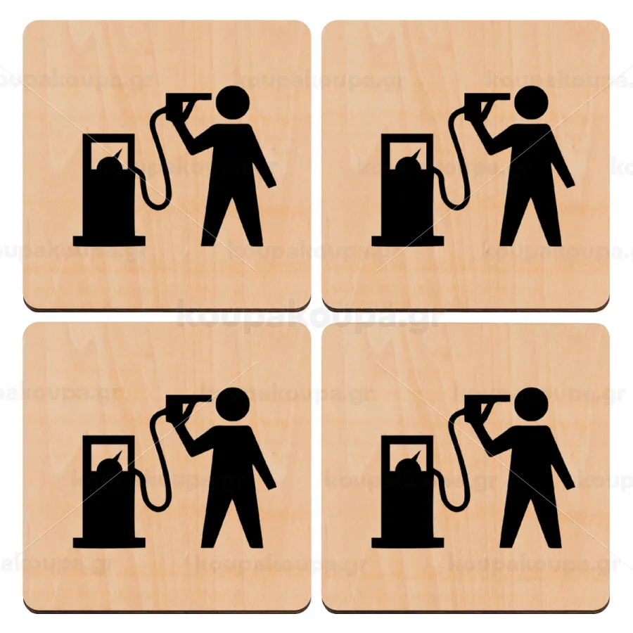 Fuel crisis, ΣΕΤ x4 Σουβέρ ξύλινα τετράγωνα plywood (9cm)