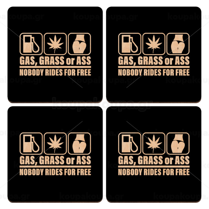 Gas, Grass or Ass, ΣΕΤ x4 Σουβέρ ξύλινα τετράγωνα plywood (9cm)