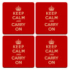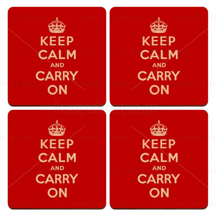 KEEP CALM  and carry on, ΣΕΤ x4 Σουβέρ ξύλινα τετράγωνα plywood (9cm)