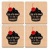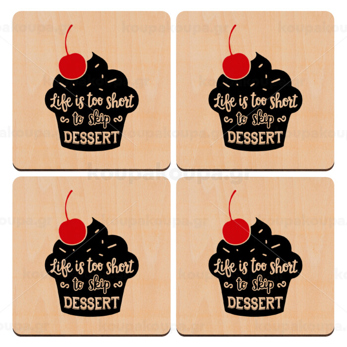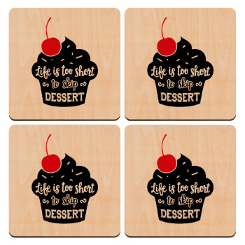 Life is too short, to skip Dessert, ΣΕΤ x4 Σουβέρ ξύλινα τετράγωνα plywood (9cm)