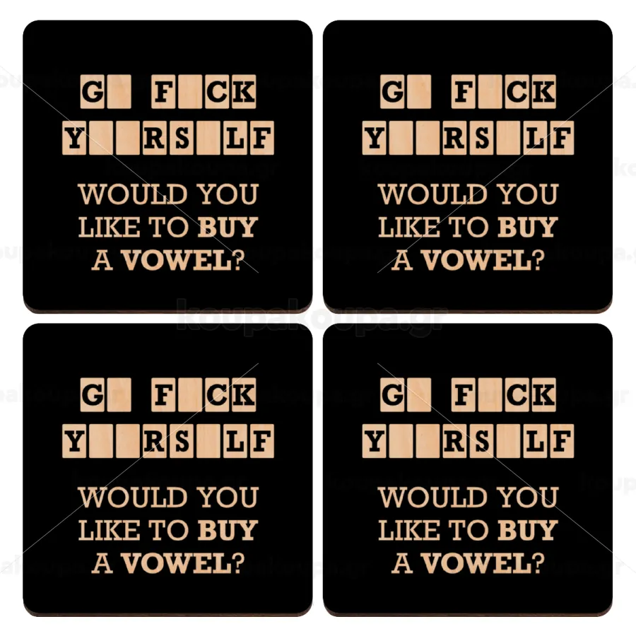Wheel of fortune, go f..k yourself, ΣΕΤ x4 Σουβέρ ξύλινα τετράγωνα plywood (9cm)