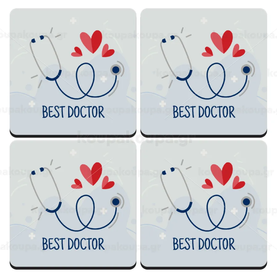 Best Doctor, ΣΕΤ 4 Σουβέρ ξύλινα τετράγωνα (9cm)