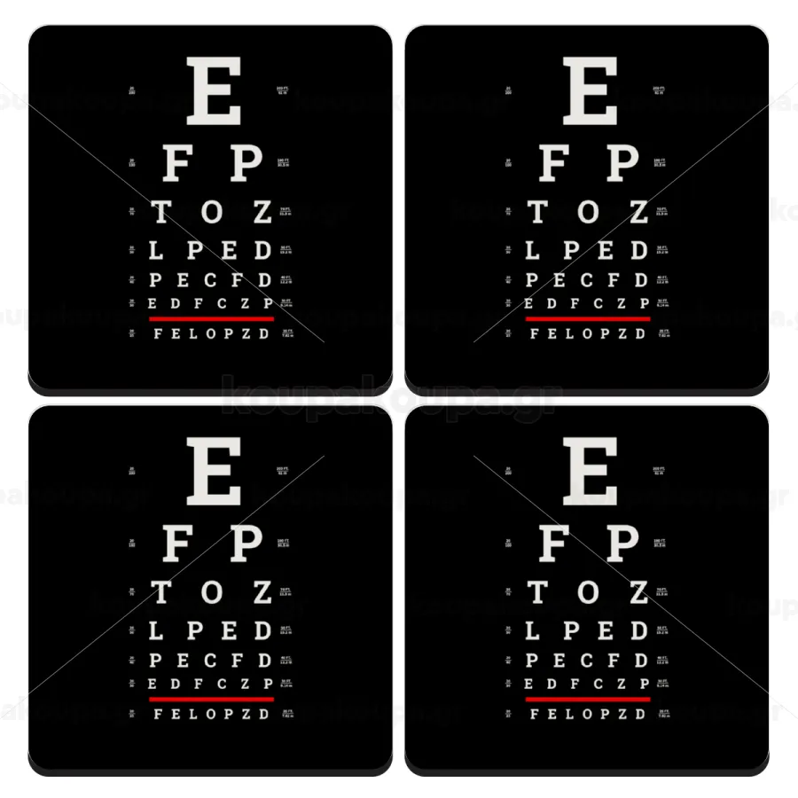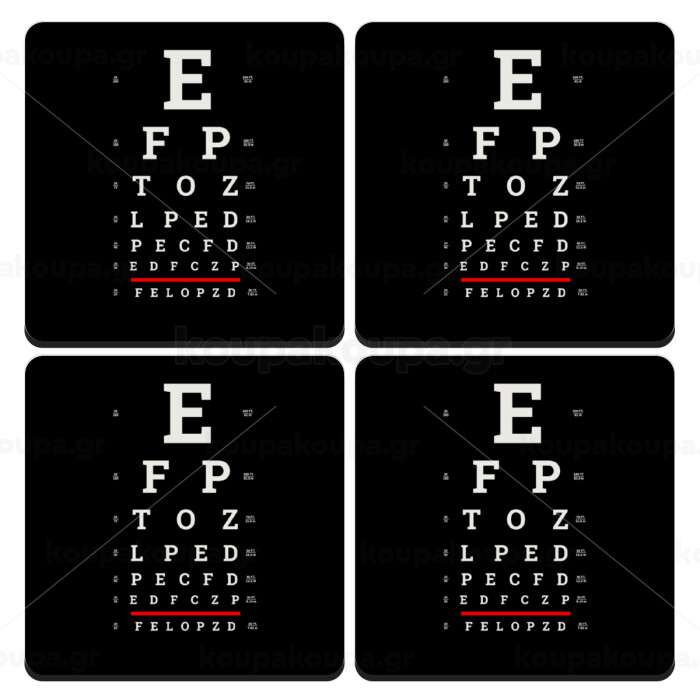 EYE test chart, ΣΕΤ 4 Σουβέρ ξύλινα τετράγωνα (9cm)