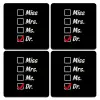 Miss, Mrs, Ms, DR, ΣΕΤ 4 Σουβέρ ξύλινα τετράγωνα (9cm)