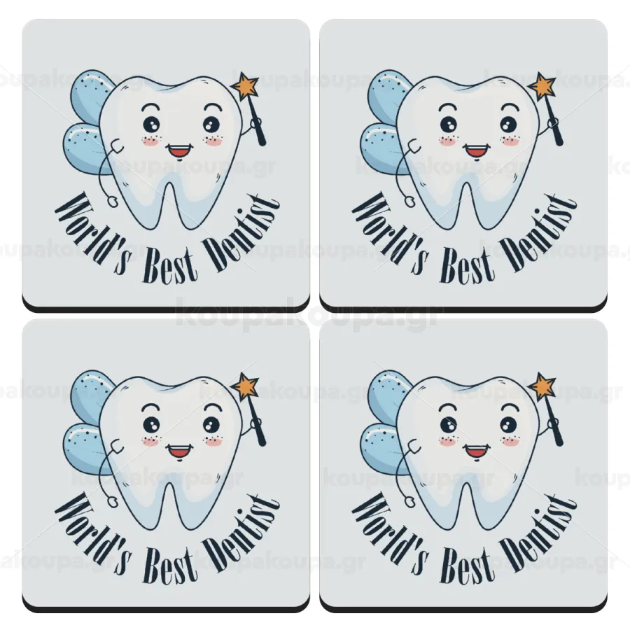 World's Best Dentist, ΣΕΤ 4 Σουβέρ ξύλινα τετράγωνα (9cm)